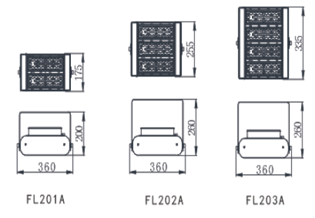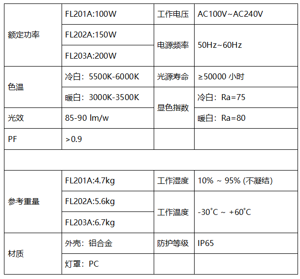 • FL20X系列投光燈發光角度為25°、60°、90° 可選。